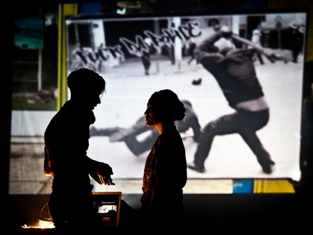 Accanto alle immagini preregistrate (compresi alcuni spezzoni dei telegiornali dell’epoca) vengono proiettati alcuni “fermo immagine” scattati durante la rapresentazione, a cogliere alcuni momenti chiave: e un ambiguo fermo immagine fissato dalla fotocamera del pc sarà anche la visione conclusiva dello spettacolo.